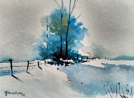 Winter Landscape Painting Snowy Landscape Painting Watercolor Painting Snow Scene