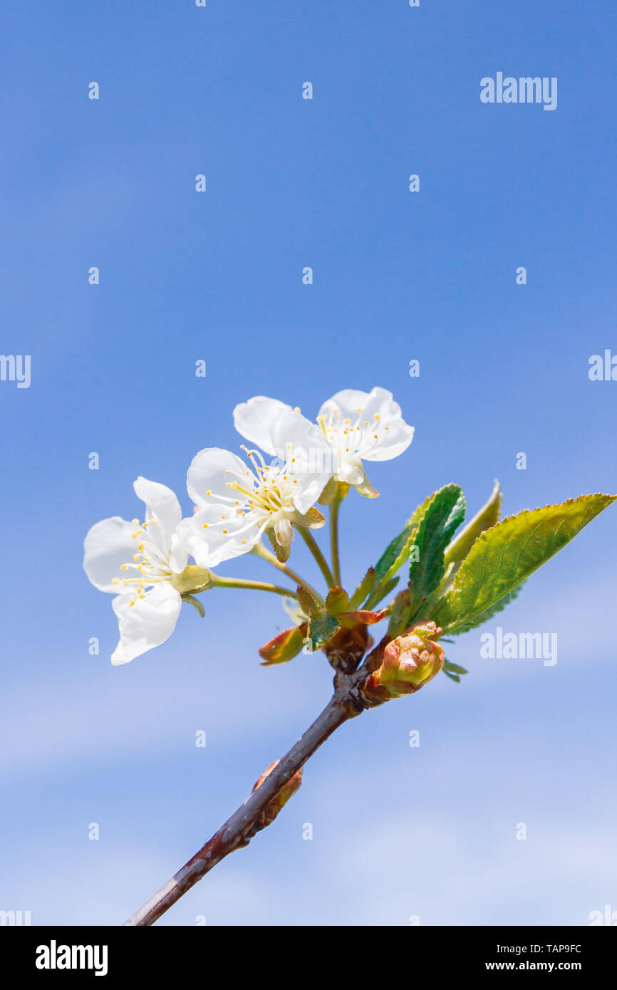 Blooming White Pear Tree Flowers In Late Spring Against The